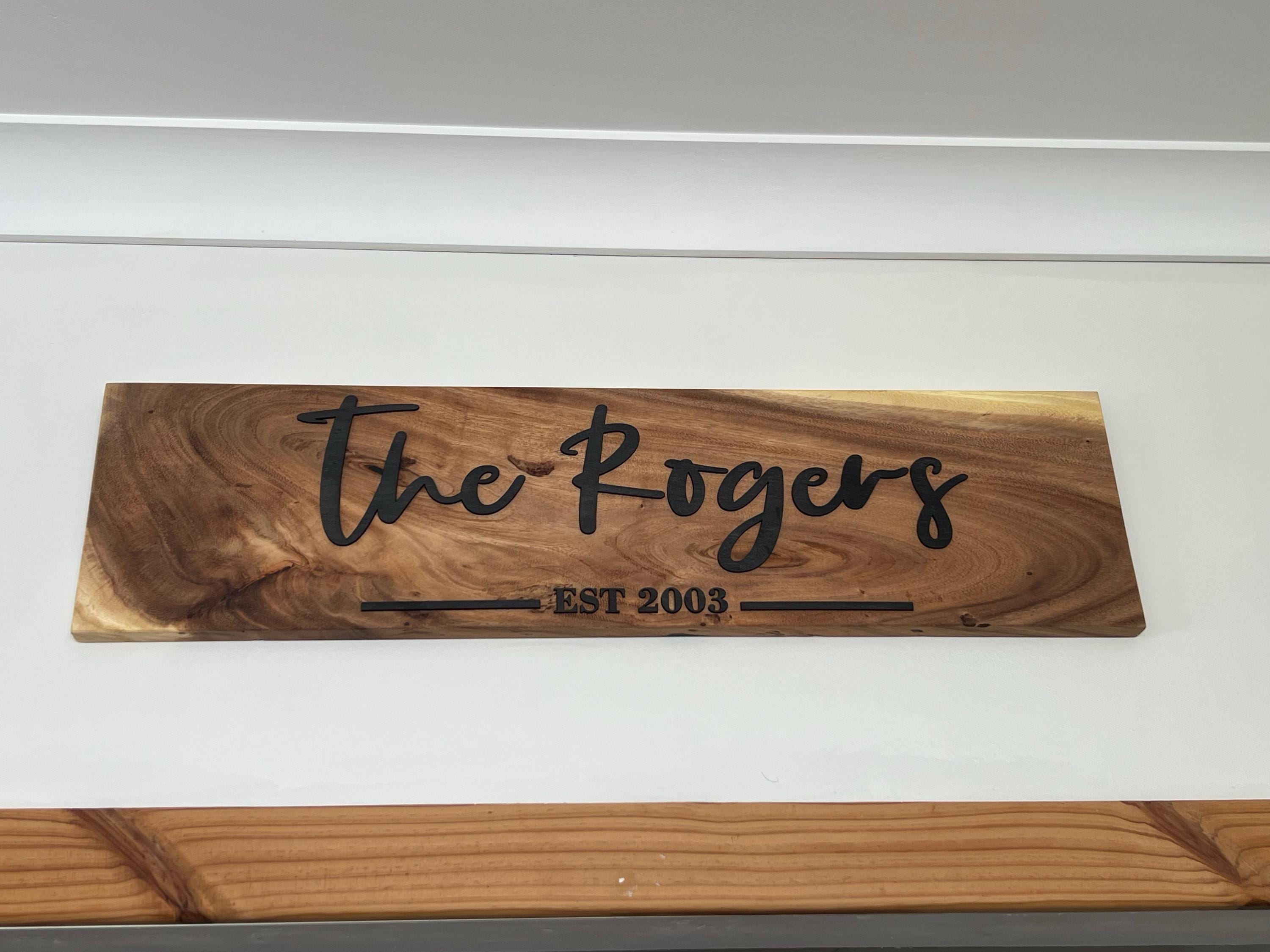 The family name plaques are a great and simple design to show off the family that you are a part of. It is made from the same wood as our tables but on a much small scale, they are just as beautiful and can be left au natural. The boards can be hung on the wall in multiple ways as the boards are about 3-4cm thick which also gives a sturdy balance of weight.