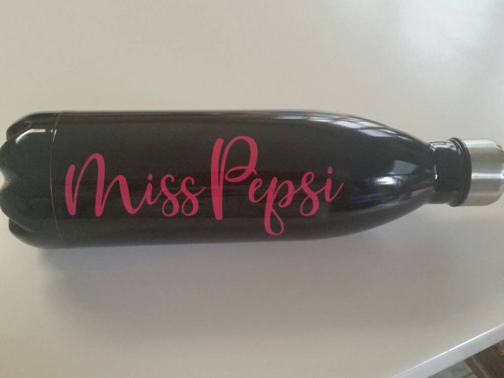 Wow love it, i ordered the first water bottle for a gift for a colleague who is always losing his water bottle! Then i ordered this 1L bottle for myself for work. Soo happy with it, love the bigger size, the font and especially the hot pink fondant. Thankyou Peter! Excellent service will definitely order again. Miss Pepsi